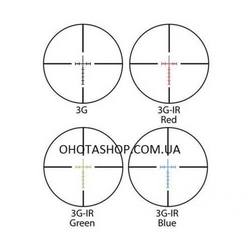 Прицел оснащен специальной дальномерной сеткой IR 3G, которая имеет по три режима яркости для каждого из трех цветов подсветки (красного, зеленого и синего). Благодаря шкале сетки можно принять поправку на ветер и учесть траекторию падения пули при стрельбе на более дальние дистанции нежели 400 м. Данная прицельная марка размещена во второй фокальной плоскости. Сама сетка выполнена методом гравировки на стекле, благодаря чему без проблем противостоит разрушению при отдаче.